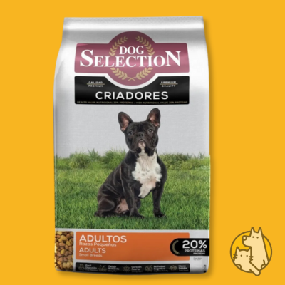 Alimento balanceado para perros adultos raza pequeña marca Dog Selection versión criadores. Presentación de 15 kgs con 24% de proteinas.