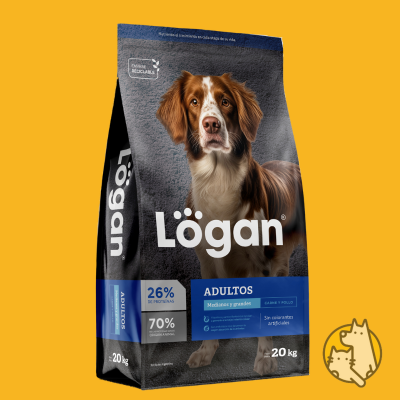 Alimento balanceado para perros adultos marca Logan. Presentación 20 kgs con 26% de proteinas. Sabor Carne y pollo
