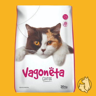 Alimento balanceado para gatos de la marca Vagoneta de 20kgs, con 28% de proteínas y sabor a carne, pollo, pescado y arroz
