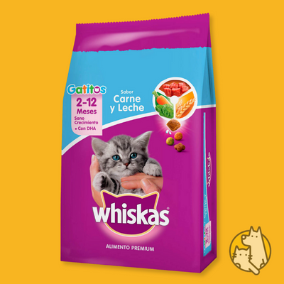 Alimento balanceado para gatitos de 2 a 12 meses de la marca Whiskas de 10kgs con 30% de proteínas. Sabor carne y leche