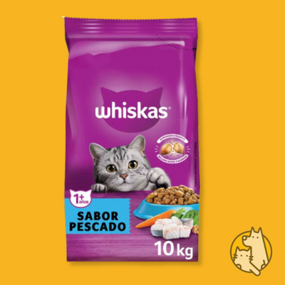 Alimento balanceado para gatos de la marca Whiskas de 10kgs con 28% de proteínas. Sabor pescado